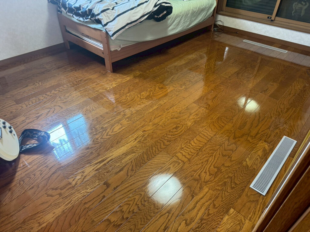 - フローリング:日常生活で付いた微細な擦りキズ、ワックスのムラ、皮脂や砂埃の蓄積によるくすみ。歩くと少しベタつく感じが気になる。