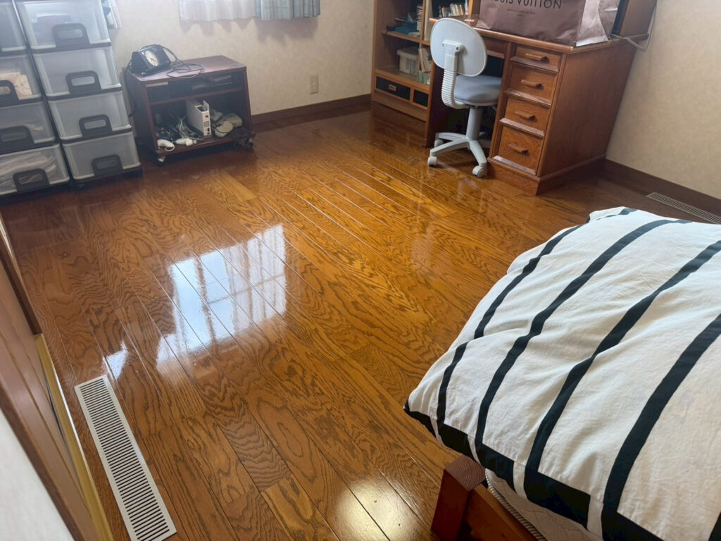 「床のくすみが消えて、部屋が広く感じます。お風呂の蛇口やガラスもピカピカで、毎日の掃除が楽になりました。予約から作業説明まで丁寧で安心でした。」