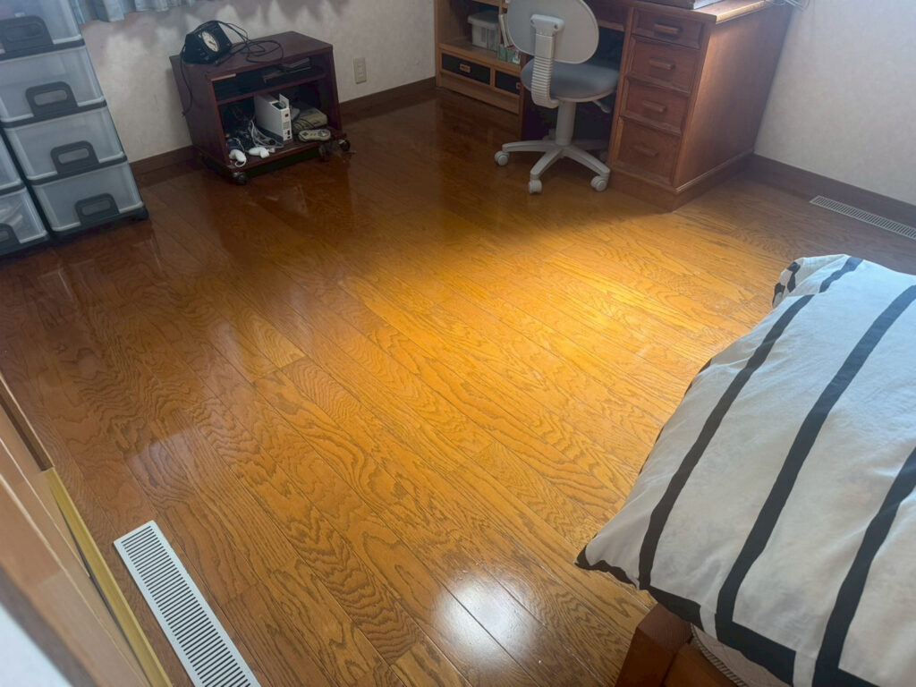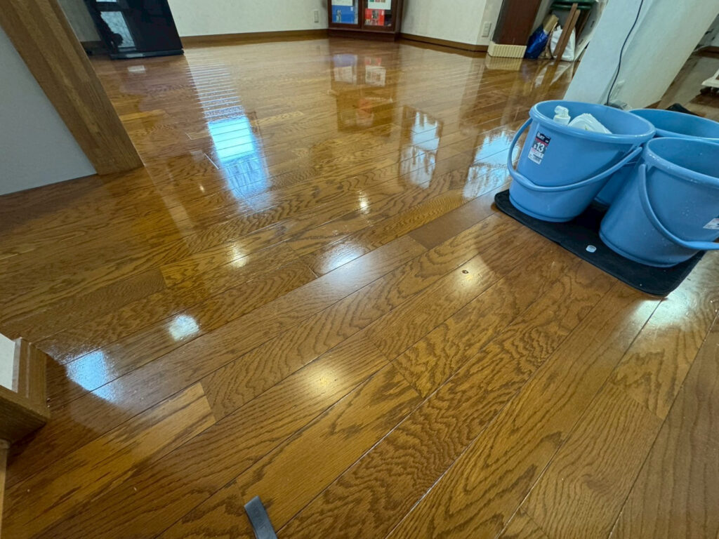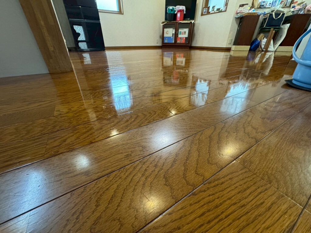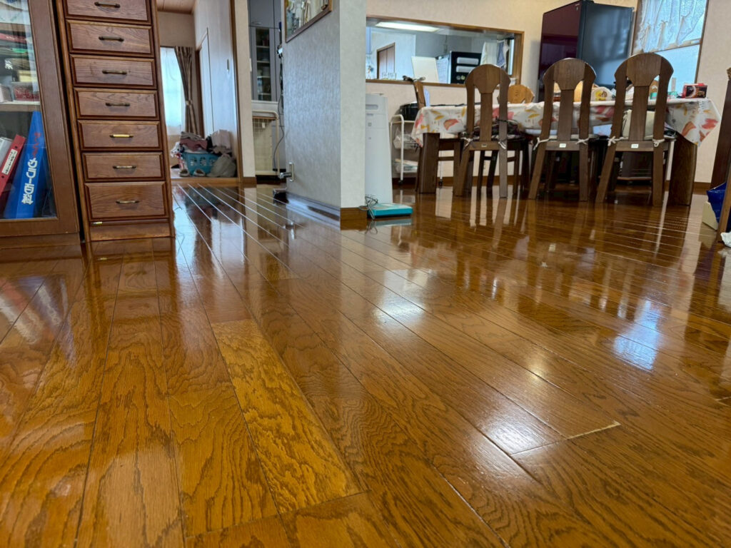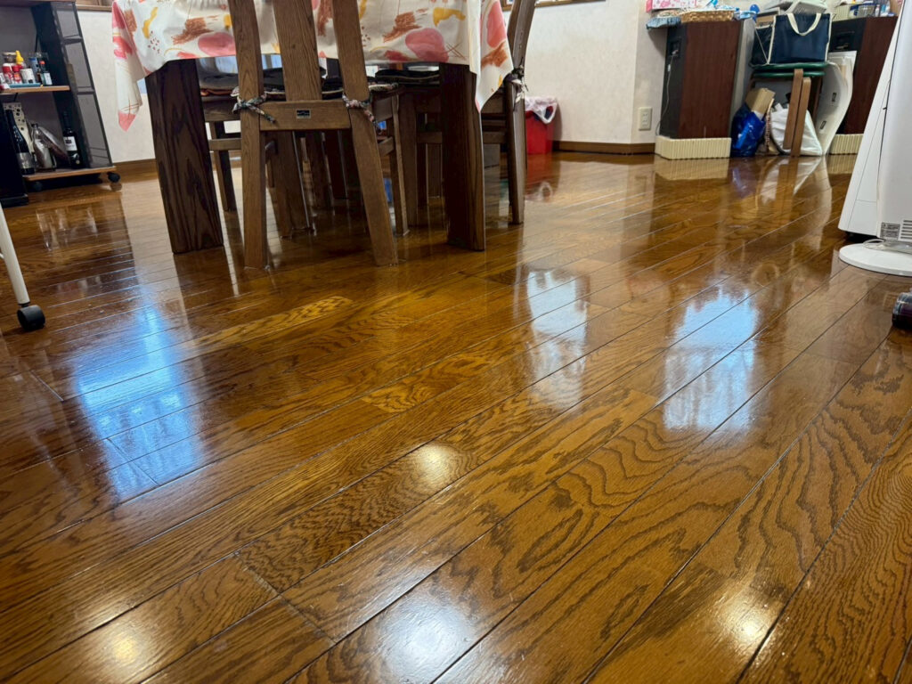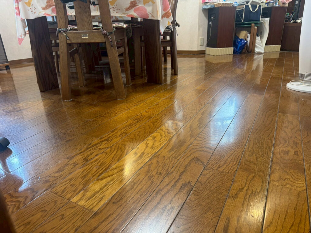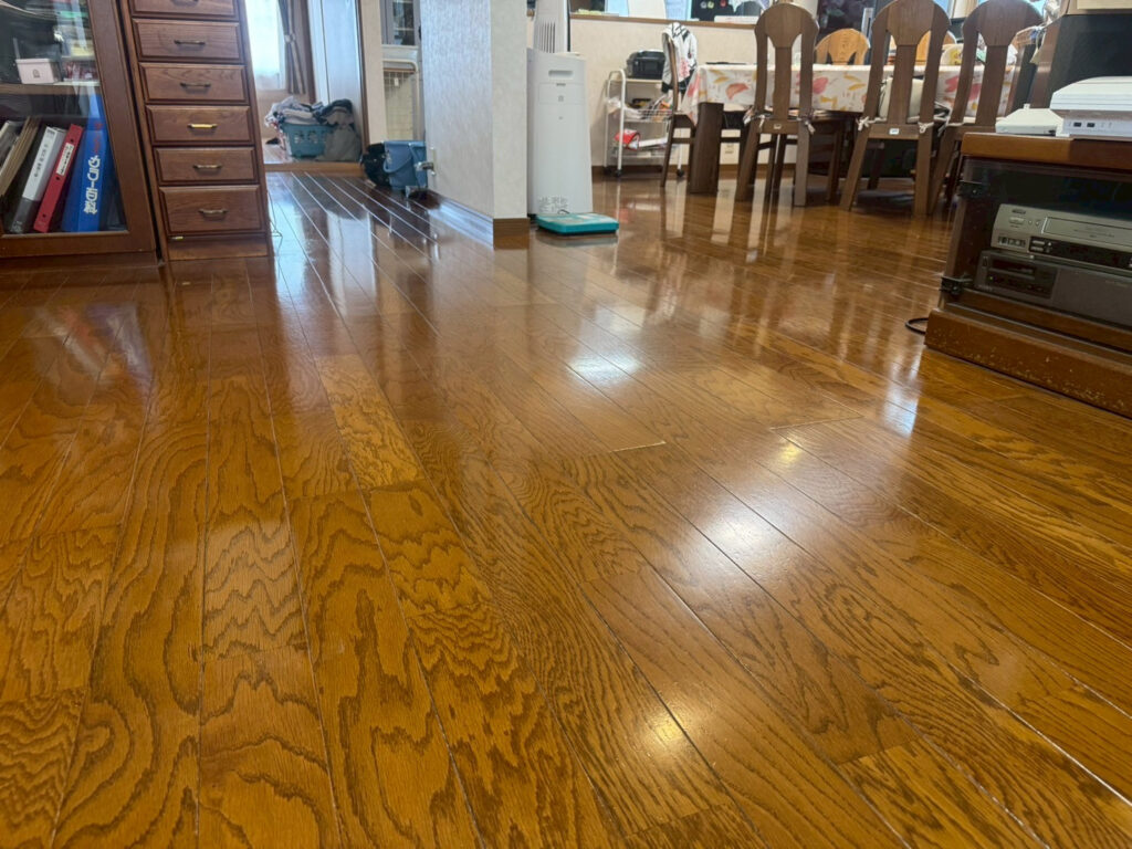 - フローリング:日常生活で付いた微細な擦りキズ、ワックスのムラ、皮脂や砂埃の蓄積によるくすみ。歩くと少しベタつく感じが気になる。