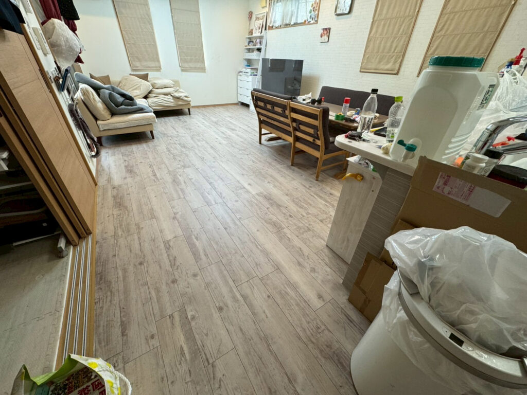 大阪府大阪市東住吉区のY様より、「マンション入居時のままのフローリングを好みのデザインへ変えたい。見た目だけでなく、子どもやペットにもやさしい床に」とのご相談をいただきました。シャルムサービスでは、内装の美装とリフォームの知見を活かし、フロアタイルへの貼り替えを実施。結果、オリジナル感あふれるおしゃれな空間に生まれ変わり、クッション性の高さで暮らし心地も大幅にアップしました。ここでは、施工前の課題から製品選定・工事手順・仕上がりのポイントまで、分かりやすくご紹介します。